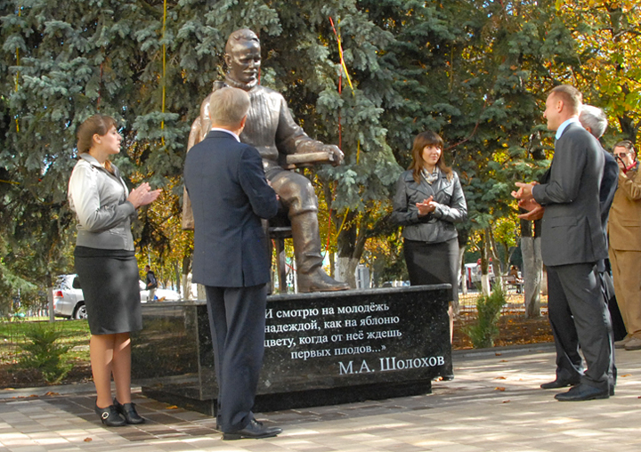 В церемонии открытия памятника Шолохову приняли участие министр образования и науки РФ Дмитрий Ливанов и врио губернатора области Евгений Савченко.