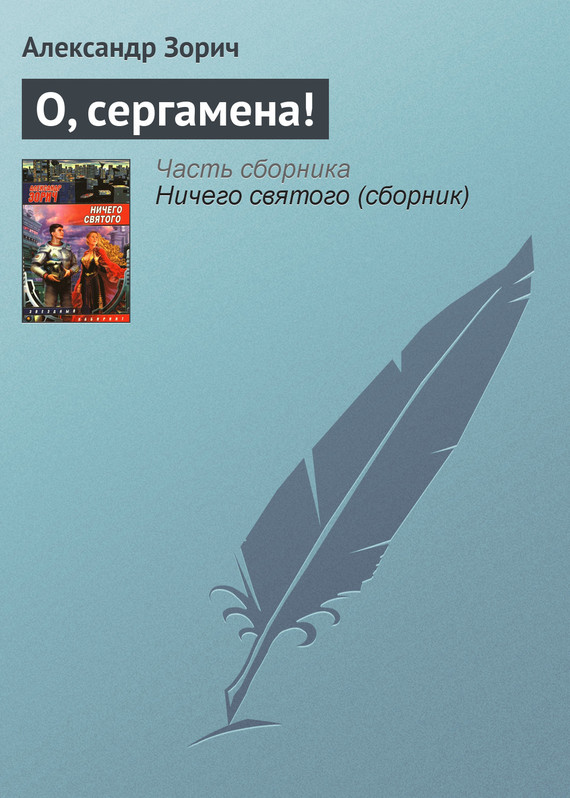 Перед вами короткая история о привязанности придворного лекаря к небывалому, фантастическому зверю – сергамене, опекать которого лекарю поручает его господин. Действие рассказа происходит при дворе монарха-самодура, чье процветающее государство можно легко найти на карте Сармонтазары. При дворе, как водится, интригуют, а лекарь, одержимый страстью к научному познанию природы, сам не замечает, как его исследования перерастают в слепую нежность и преданность невиданному животному. В 2004 году рассказ «О, сергамена!» увидел свет в сборнике «Человек человеку – кот». Таким образом, составители законодательно закрепили принадлежность фантастического зверя сергамены к семейству кошачьих.