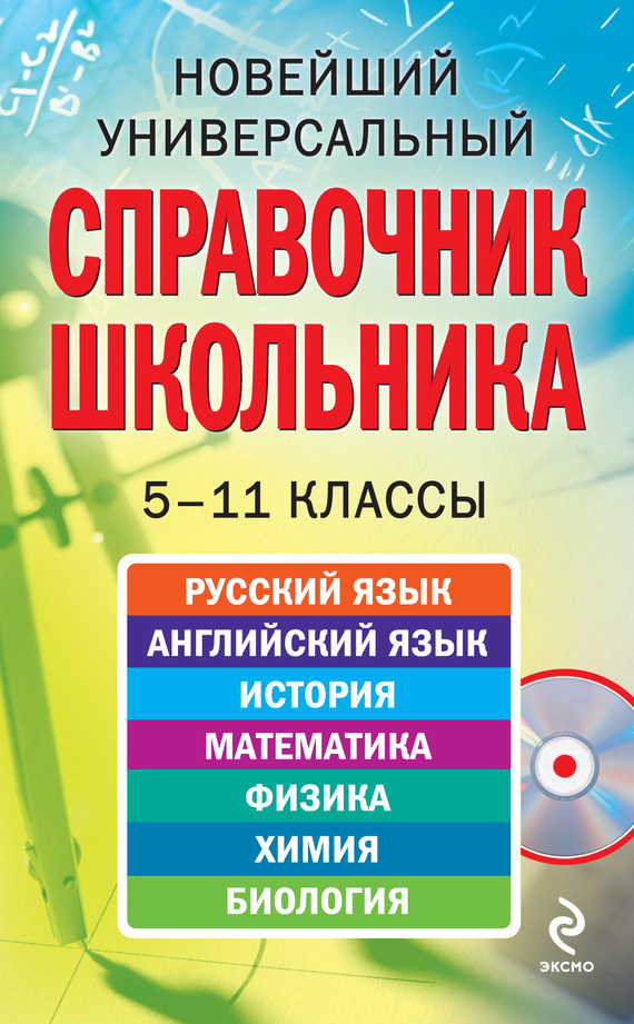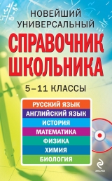 В новейшем универсальном справочнике школьника представлена полная информация по основным школьным предметам: русскому языку, истории, английскому языку, математике, физике, химии и биологии. Издание подготовлено в соответствии с современными требованиями школьной программы среднего (полного) общего образования. Весь теоретический материал изложен кратко, логично (по классам), доступно и снабжен достаточным количеством наглядных примеров, схемами и таблицами. Справочник будет полезен учащимся средней школы при подготовке к урокам, самостоятельным и контрольным работам, при выполнении домашних заданий. Мультимедийный диск прилагается только к печатному изданию книги.