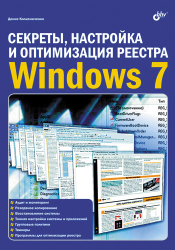 Рассмотрено устройство, настройка и оптимизация реестра, секреты и трюки при работе с ним, параметры популярных Windows-приложений. Описаны программы для мониторинга, чистки и быстрой настройки реестра, которые пригодятся каждому пользователю. Для администраторов систем даны приемы управления реестром (политики, списки доступа), использования Windows Installer, тонкая настройка системы и приложений, примеры действий в различных нештатных ситуациях. Некоторые настройки реестра, приведенные в этой книге, будут работать не только в Windows 7, но и в Windows Vista и Windows ХР.