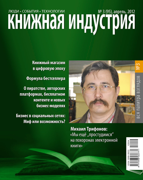 редприятий в реализации Национальной программы поддержки и развития чтения; проведение всероссийских конкурсов книготорговых предприятий и работников отрасли. Мы много говорим о тех колоссальных возможностях, которые несёт в себе рынок электронных книг, мы пытаемся экспериментировать и очень надеемся, что при сохранении темпов развития наши эксперименты на этом рынке в скором времени станут реальным бизнесом. Но так ли это? По материалам 2-й сессии VII ежегодной конференции «Медиабизнес. Достигая успеха в меняющемся мире» («Ведомости») Читайте в рубрике «Аналитика рынков». О пиратстве, авторских платформах, бесплатном контенте и новых бизнес-моделях читайте в рубрике «Электронная книга». Российский интернет-пользователь действительно много времени проводит в социальных сетях. Но что мы делаем для того, чтобы время, проведённое нашими читателями в социалке, было эффективно с точки зрения дальнейших продаж? И можно ли вообще в данном случае что‑либо сделать? Сегодняшний наш разговор о возможностях работы в этом пространстве, о специфике аудитории социальных сетей и об инструментарии, который мы, книжники, могли бы использовать для продвижения книги и чтения. Читайте в рубрике «Технологии». О стратегии издательства в цифровую эпоху с «КИ» поделился Хью Александр, специалист по правам и цифровым продажам Sage. Читайте в рубрике «За рубежом». Ритейл на Западе переживает не лучшие времена. Книжный ритейл – не исключение. Книги, ежедневную потребность в которых испытывает не более 13% населения, сдают позиции под натиском других форм развлечения. Книжные полки заполняются некнижным товаром – менее маржинальным, но быстро оборачиваемым. Интернет-магазины «бьют» традиционную торговлю на ценовом поле, а электронные книги уводят в Интернет наиболее технически подкованных читателей. «О доблестях, о подвигах, о славе…» и о будущем книжной торговли «КИ» беседует с бывшим СЕО Boders UK Филлипом Доунером.