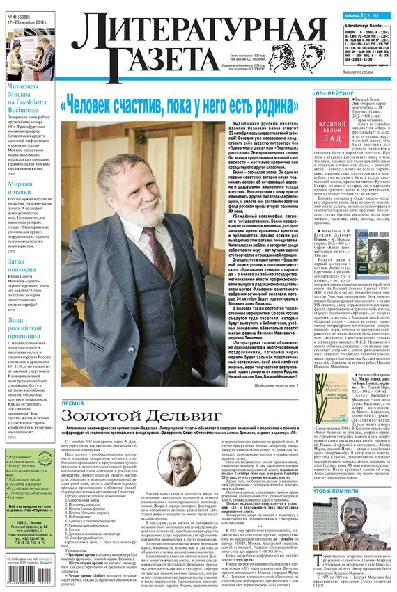 Отзыв на книгу «Литературная газета №41 (6388) 2012»