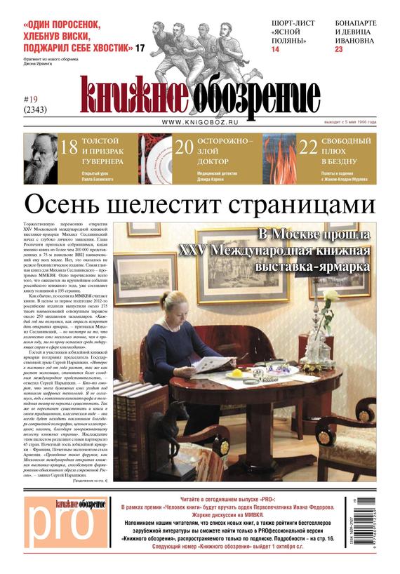 «Книжное обозрение» – еженедельная газета о книгах и книгоиздании. Всё самое интересное из мира литературы: фантастика, детективы, беллетристика, бестселлеры. Российские и зарубежные новости литературы, критика, обзоры, интервью с писателями, заметки о литературной жизни, рейтинги продаж. «Книжное обозрение» – все, что вы хотите знать о книгах! Читайте в номере: События: книга года Магия цифр Книгуру Книги-финалисты «Книгуру» Опыт: открытый урок П. Басинский. «О чем ты плакал?» Клуб: детектив Т. Слобожанина. Дитя шпиона Литжизнь Л. Звонарева. Инкубатор талантов Клуб: детлит В. Бройде. Дело было не в сэндвиче и многое другое