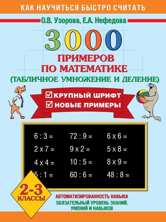 В пособии собраны 3000 новых примеров по математике по одной из базовых тем – «Табличное умножение и деление». Как и любая другая тема, она требует внимательного осмысления и прочного закрепления. Особенностью этого издания является крупный шрифт. Как показывает практика, ученик полностью усвоил тему, если решает пример и записывает ответ в течение 4–7 секунд. В этом случае можно говорить, что навык счета доведен до автоматизма. На каждой странице приведены 6–7 столбиков, в среднем по 35 примеров. В конце столбика записывается время, потраченное учеником на решение. В левом нижнем углу обозначены контрольные цифры: идеальное время решения одного столбика, удовлетворительное и результат, который должен заставить ученика задуматься. Учителю сложно проверить такое количество примеров, поэтому лучше, если время, затраченное на решение каждого столбика, отметят взрослые дома. Чтобы достичь хороших результатов, каждый день нужно решать по одной странице. Пособие можно использовать в качестве дополнительного материала на уроках математики, а также для занятий дома.