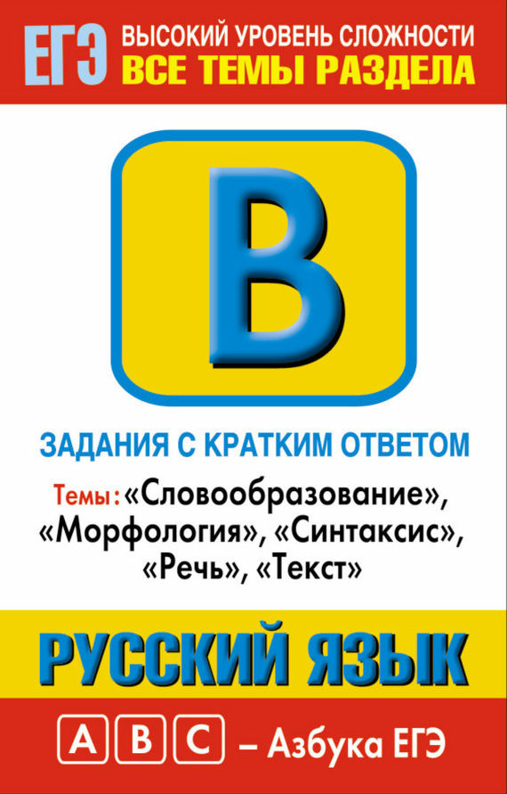 Купить книгу «Русский язык. Задания с кратким ответом. Часть В. Темы: «Словообразование», «Морфология», «Синтаксис», «Речь», «Текст»»