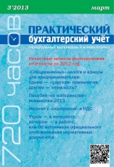 Журнал «Практический бухгалтерский учёт. Официальные материалы и комментарии (720 часов)» является приложением к ежемесячному изданию для бухгалтеров «Практический бухгалтерский учёт». В каждом месяце примерно 720 часов, и за это время могут появляться или меняться нормативные акты. Читая наш журнал, вы получите конкретные ответы на три главных вопроса: что было, что стало, что делать. И, конечно же, сможете увидеть подробные примеры с проводками. В номере: – Об источниках официального опубликования нормативных документов – Пособия «по материнству»: новшества-2013 – «Спецрежимные» налоги и взносы для предпринимателей – Журнал с «сюрпризом» и НДС – Некоторые нюансы формирования отчётности за 2012 год и многое другое!