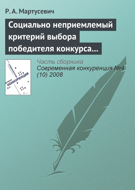 Купить книгу «Социально неприемлемый критерий выбора победителя конкурса за инфраструктурные концессии»