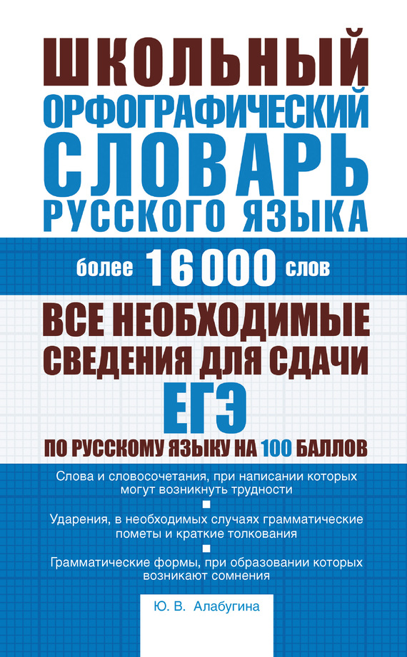 Словарь содержит более 16 000 слов современного русского литературного языка, при написании которых могут возникнуть трудности. Все слова, кроме односложных, имеют ударения. При определенных разрядах слов даются грамматические формы, в необходимых случаях приводятся грамматические пометы. Для различения одинаковых или близких по написанию слов приводятся краткие толкования. В конце словаря помещено Приложение, в состав которого входит список мужских и женских имен, употребляющихся в современном русском языке и частично в литературных произведениях прошлого, раздел «Прописная или строчная» и перечень городов России и наименований их жителей. Завершают книгу «Основные правила русской орфографии» Словарь адресован учащимся школ, гимназий, колледжей, лицеев и техникумов, поскольку в нем есть весь необходимый комплекс сведений для успешной сдачи ЕГЭ по русскому языку.