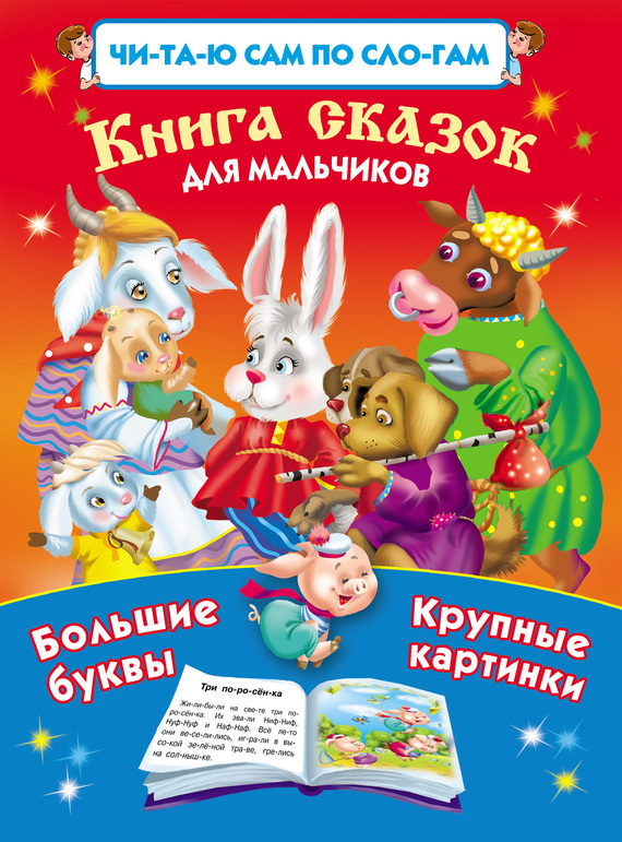 Книга сказок для мальчиков – это первые уроки самостоятельного чтения. Крупные буквы, слова, разбитые на слоги, и знаки ударения помогут маленьким ученикам перейти от слогового чтения к чтению целыми словами и предложениями. Научиться читать можно легко и с удовольствием!