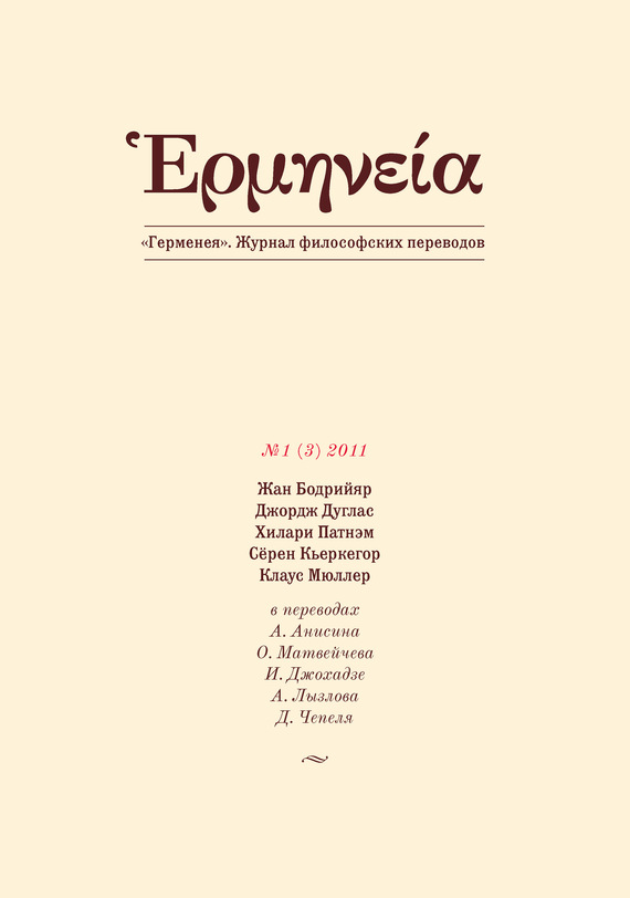 «Герменея» – журнал философских переводов отдельных статей, отрывков из книг или цельных работ классиков истории философии и современных авторов. В номере: Жан Бодрийяр. Симуляция (Перевод А. Л. Анисина) Дж. Дуглас. Понятие поэтической истины у Хайдеггера (Перевод О. Матвейчева) Х. Патнэм. Вопрос о реализме (Перевод И. Джохадзе) С. Кьеркегор. Евангелие страданий. Христианские беседы (Перевод А. В. Лызлова) Клаус Мюллер. О возможности и необходимости говорить сегодня о Боге (Перевод Д. Чепеля)