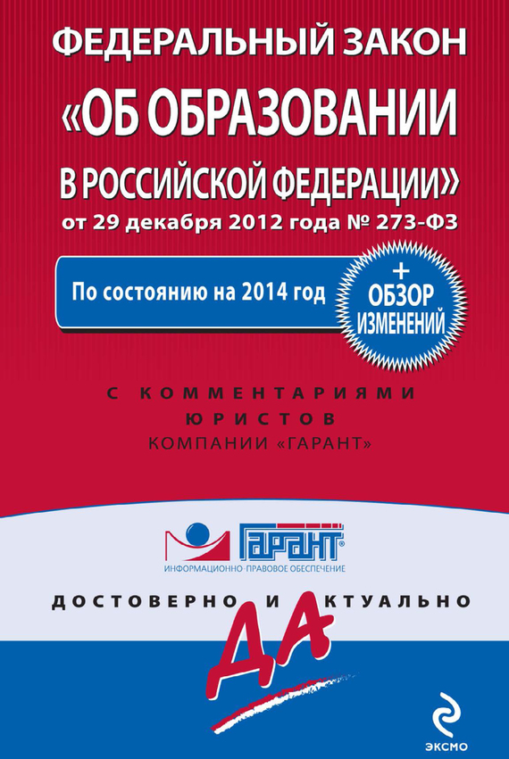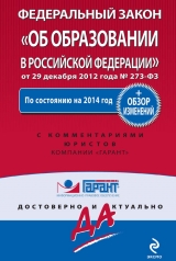 Издание содержит текст Федерального закона от 29 декабря 2012 г. № 273-ФЗ «Об образовании в Российской Федерации», вступившего в силу с 1 сентября 2013 г. по состоянию на 2014 год. Он заменяет целый ряд законодательных актов. В их числе – Закон об образовании от 1992 г., Закон о высшем и послевузовском профессиональном образовании от 1996 г. Закон об образовании – комплексный базовый акт, интегрирующий в себе как общие положения, так и нормы, регулирующие отношения в отдельных подсистемах образования. Текст Федерального закона дополнен комментариями юристов компании «Гарант». В качестве средства навигации к книге прилагается алфавитно-предметный указатель. Также издание содержит сравнительный анализ Закона Российской Федерации от 10 июля 1992 г. № 3266-1 «Об образовании» и Федерального закона от 29 декабря 2012 г. № 273-ФЗ «Об образовании в Российской Федерации», подготовленный экспертами компании «Гарант». Издание будет исключительно полезно юристам, преподавателям, аспирантам и студентам юридических вузов и колледжей, а также всем, интересующимся вопросами законодательства, осуществляющего правовое регулирование в области образования. Книга подготовлена к печати с использованием справочной правовой системы ГАРАНТ.