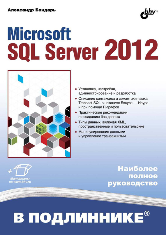 Книга посвящена установке, настройке, администрированию и разработке баз данных с помощью СУБД SQL Server 2012. Рассмотрено создание базы данных и основных ее объектов: таблиц, индексов, представлений, хранимых процедур и функций, триггеров и др. Показана работа средств отображения объектов и их характеристик. Описаны типы данных, включая XML, пространственные и пользовательские данные. Приведены синтаксис и семантика языка Transact-SQL в нотациях Бэкуса – Наура и при помощи R-графов. Подробно рассмотрены характеристики и взаимодействия транзакций. Уделено внимание средствам копирования и восстановления базы данных. В ходе создания учебной базы данных описаны примеры использования операторов манипулирования данными, триггеров, хранимых процедур и др. Исходные коды примеров размещены на сайте издательства. Для программистов.