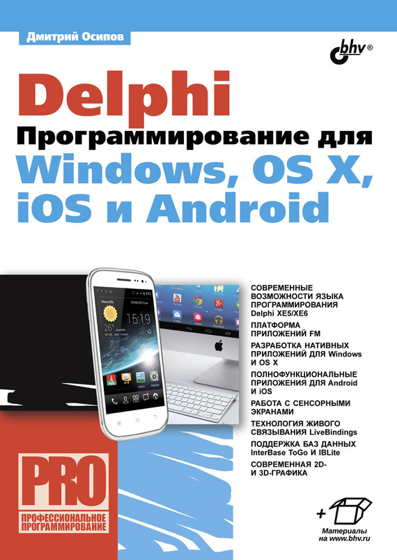 Книга посвящена одному из самых совершенных языков программирования Delphi XE5/XE6. В ней подробно рассматривается новейшая кроссплатформенная библиотека FM, позволяющая создавать полнофункциональное программное обеспечение для операционных систем Windows и OS X, а также для смартфонов и планшетных компьютеров, работающих под управлением Android и iOS. Проекты примеров из книги размещены на сайте издательства. Для программистов.