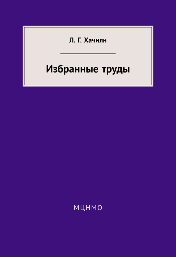 В сборник избранных трудов Л.Г.Хачияна вошли наиболее значительные работы по сложности задач линейного и математического программирования, а также по теории дуализации и генерации. Подробно, в нескольких авторских вариантах, изложен открытый Л.Г.Хачияном полиномиальный алгоритм решения задачи линейного программирования – фундаментальный вклад Л.Г.Хачияна в математическое программирование. Книга будет полезна специалистам в области математического программирования и теории сложности, аспирантам и студентам.