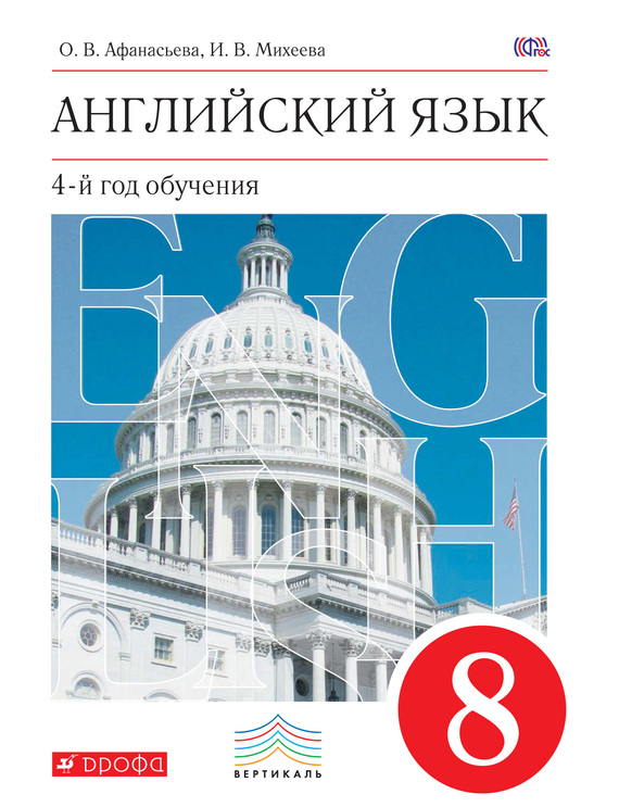 Учебник, созданный известными специалистами в области преподавания английского языка О. В. Афанасьевой и И. В. Михеевой, предназначен для учащихся 8 классов и является основным компонентом учебно-методического комплекcа для четвертого года обучения, в который также входят две рабочие тетради, рабочая программа, аудиоприложение, книга для учителя и методическое пособие к данной линии. Учебник переработан в соответствии с требованиями Федерального государственного образовательного стандарта основного общего образования, одобрен РАО и РАН и рекомендован Министерством образования и науки Российской Федерации. (CD прилагается только к печатному изданию.)