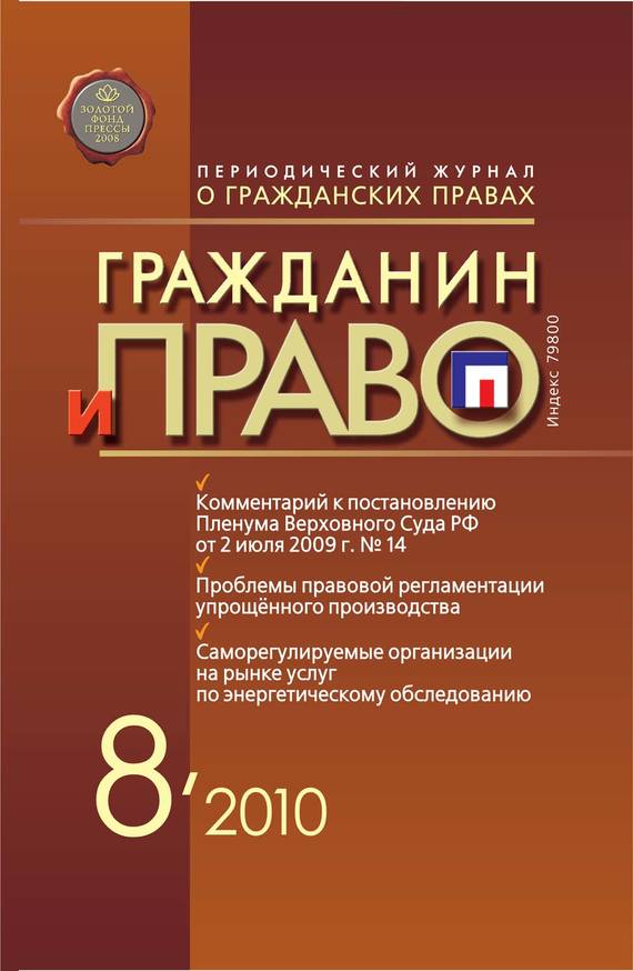 «Гражданин и право» – научно-теоретический журнал об основных правах и обязанностях граждан при урегулировании правоотношений с гражданами, организациями, а также при защите нарушенных гражданских прав в судах и других инстанциях. В журнале ведутся постоянные актуальные рубрики, охватывающие ключевые вопросы правоотношений – трудовых, финансовых, налоговых, уголовных, экологических, семейных, а также пенсионного и социального обеспечения, охраны интеллектуальной собственности, защиты прав потребителей. Издание отражает новейшие тенденции в развитии юридических наук, общества и государства, занимается популяризацией права и пропагандой общественного и юридического сознания. В номере: Вопросы теории К вопросу о понятии и сущности гражданского общества: социально-правовой аспект Финансовые правоотношения Современные методы организации бюджетного планирования Экологическое право «Экологическая девиантология»: эколого-криминогенные девиации поведения Обеспечение прав собственности Саморегулируемые организации на рынке услуг по энергетическому обследованию Дискуссия Еще раз о частичной уступке патента Научные сообщения Правовой статус управляющей организации как субъекта договора управления многоквартирным домом и многое другое