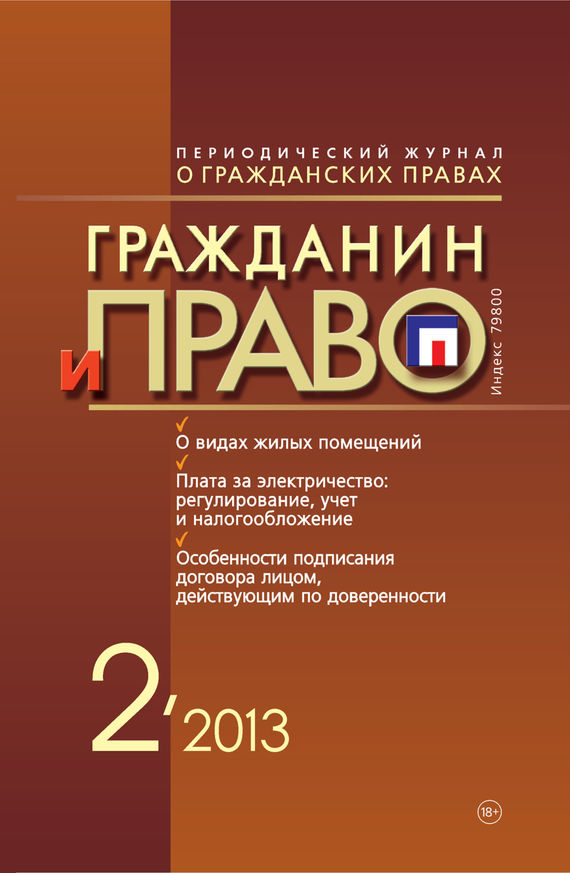 «Гражданин и право» – научно-теоретический журнал об основных правах и обязанностях граждан при урегулировании правоотношений с гражданами, организациями, а также при защите нарушенных гражданских прав в судах и других инстанциях. В журнале ведутся постоянные актуальные рубрики, охватывающие ключевые вопросы правоотношений – трудовых, финансовых, налоговых, уголовных, экологических, семейных, а также пенсионного и социального обеспечения, охраны интеллектуальной собственности, защиты прав потребителей. Издание отражает новейшие тенденции в развитии юридических наук, общества и государства, занимается популяризацией права и пропагандой общественного и юридического сознания. В номере: История государства и права Древние царства и генезис «нейтральной» государственности Обеспечение прав собственности О видах жилых помещений Трудовые правоотношения Некоторые вопросы правового регулирования служебных отношений Образование: реформа и опыт Плата за электричество: регулирование, учет и налогообложение Судебно-арбитражная практика Особенности подписания договора лицом, действующим по доверенности Новое в законодательстве О проекте федерального закона о внесении изменений в Кодекс Российской Федерации об административных правонарушениях и многое другое