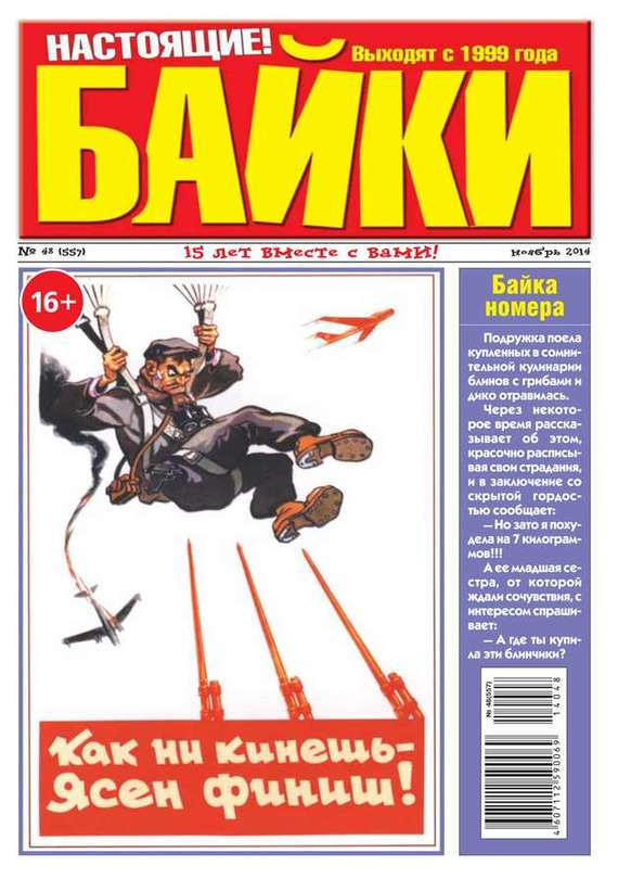 Байки – приложение к Большому Приколу. Газета прикольных баек. На страницах издания публикуются письма наших читателей, где люди делятся своими веселыми историями, произошедшими с ними или с их друзьями. Есть подборка тематических баек. Исторические байки или то, что вы нигде не узнаете. Веселые карикатуры. Кроссворды.