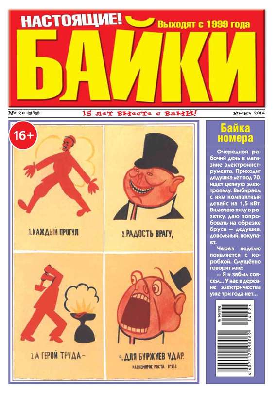 Байки – приложение к Большому Приколу. Газета прикольных баек. На страницах издания публикуются письма наших читателей, где люди делятся своими веселыми историями, произошедшими с ними или с их друзьями. Есть подборка тематических баек. Исторические байки или то, что вы нигде не узнаете. Веселые карикатуры. Кроссворды.