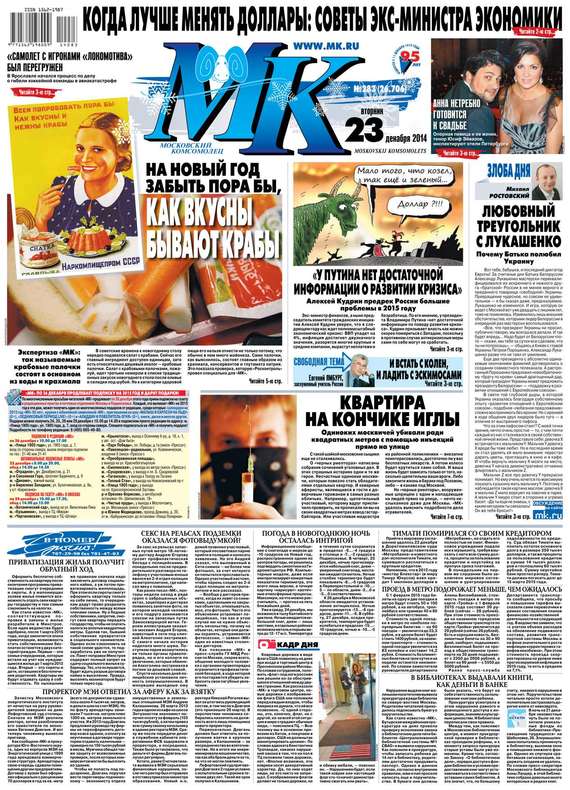 Московский комсомолец – популярная российская газета. Выходит во всех крупных городах России. Ежедневно обновляемые статьи, обзоры, комментарии. Собственная лента новостей. Выходит с 11 декабря 1919 г. Распространяется по всей России, в ближнем зарубежье, в Европе и Америке. Тематика: общественно-политическое издание, органично сочетающее острые социальные и политические материалы, экономические обзоры, городские новости, светскую хронику и развлекательную информацию.