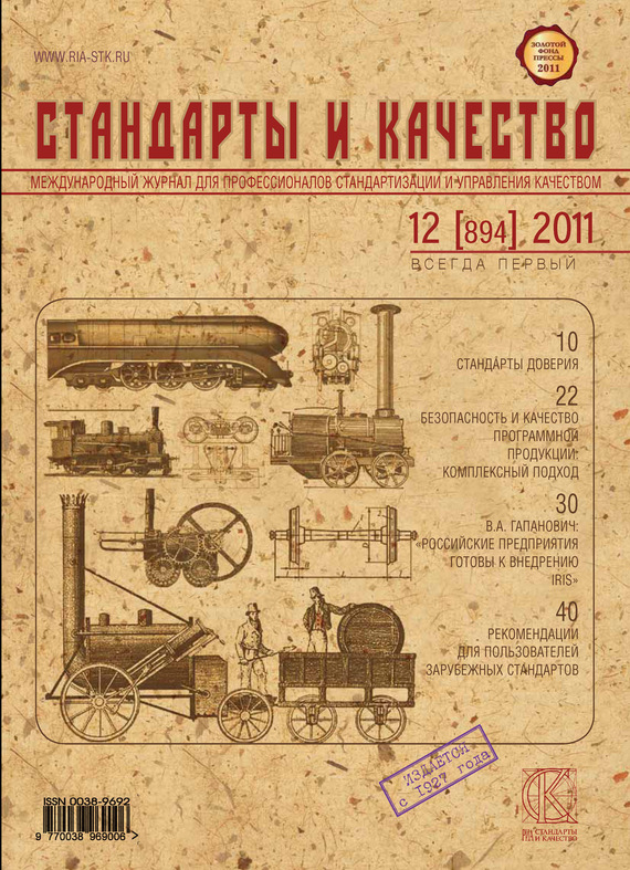 «Стандарты и качество» – старейший научно-технический и экономический журнал России для профессионалов в области стандартизации и управления качеством. Издание последовательно и обстоятельно рассказывает на своих страницах о новейших формах и методах управления качеством в России и странах СНГ. Издаётся с 1927 г. В номере: – Стандарты доверия – Безопасность и качество программной продукции: комплексный подход – В. А. Гапанович: «Российские предприятия готовы к внедрению IRIS» – Рекомендации для пользователей зарубежных стандартов и многое другое!