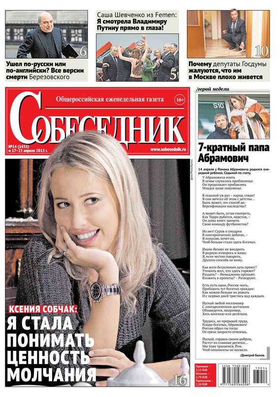 Популярный еженедельник, уделяющий равное внимание как развлекательным, так и общественно-значимым темам. На страницах издания вы найдете журналистские расследования, интервью с известными персонами политики, культуры, шоу-бизнеса, исторические очерки и многое другое. Уже более четверти века «Собеседник» разговаривает с читателями на одном языке, придерживаясь объективного и независимого взгляда на события и факты современной жизни.
