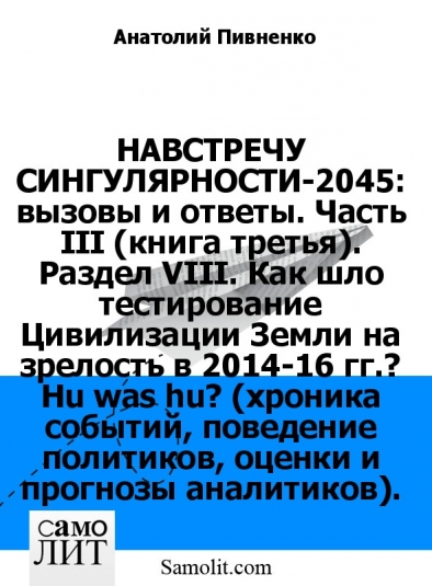 НАВСТРЕЧУ СИНГУЛЯРНОСТИ-2045: вызовы и ответы. Часть III (книга третья). Раздел VIII. Как шло тестирование Цивилизации Земли на зрелость в 2014-16 гг.? Hu was hu? (хроника событий, поведение политиков, оценки и прогнозы аналитиков).